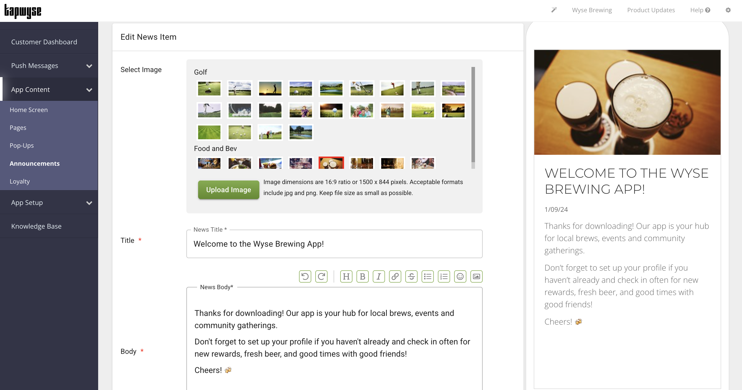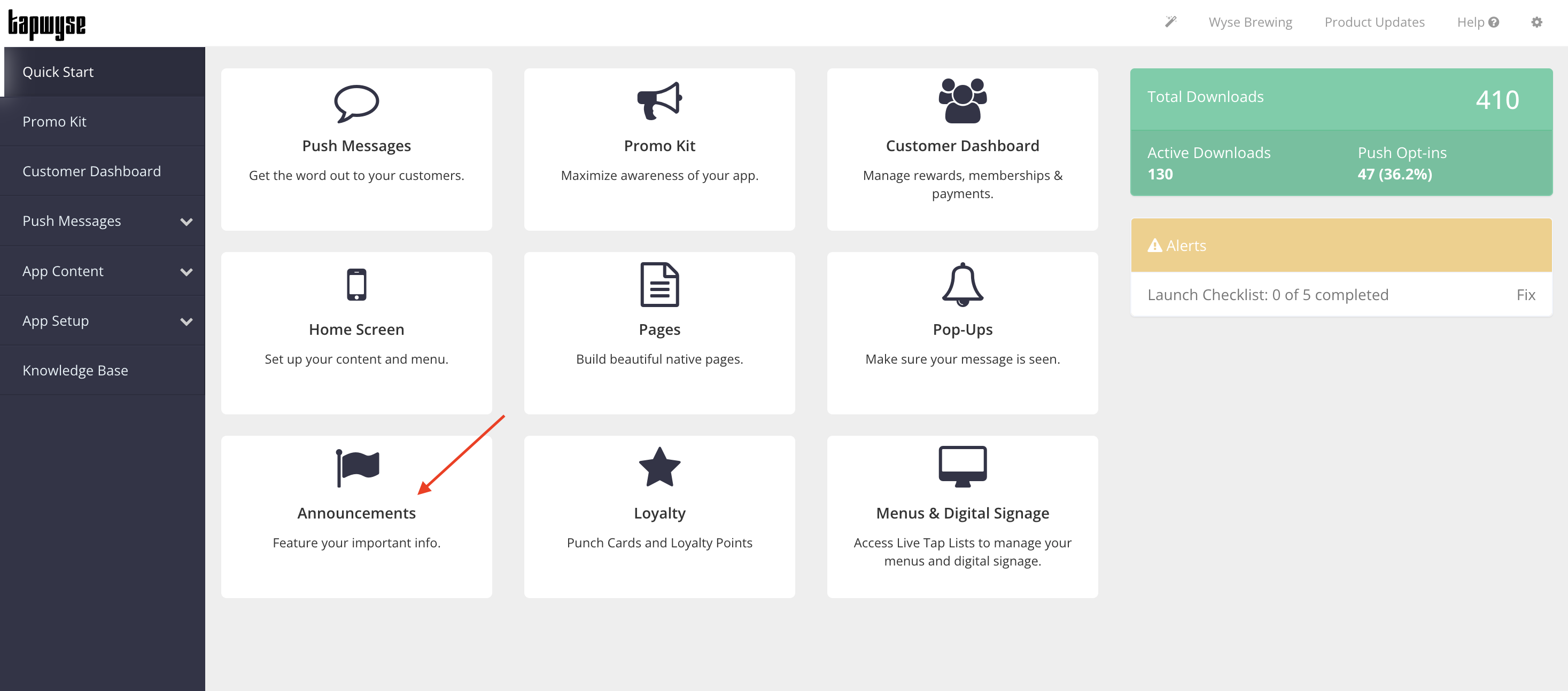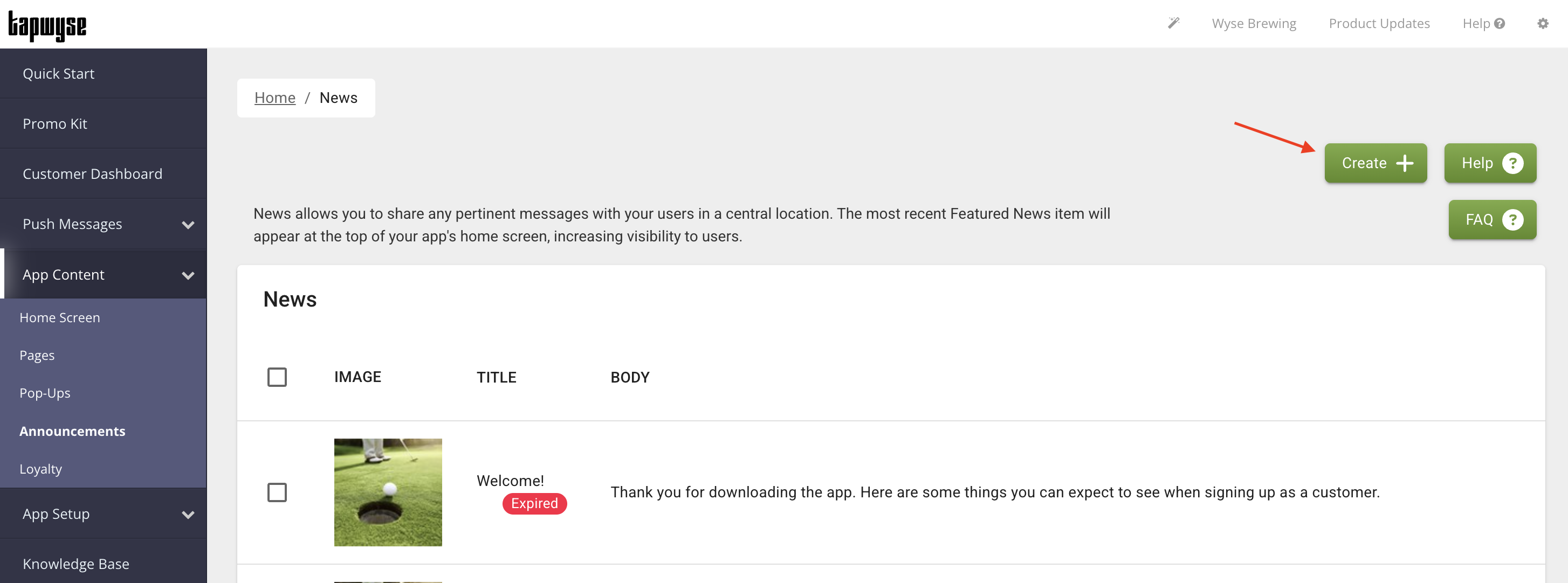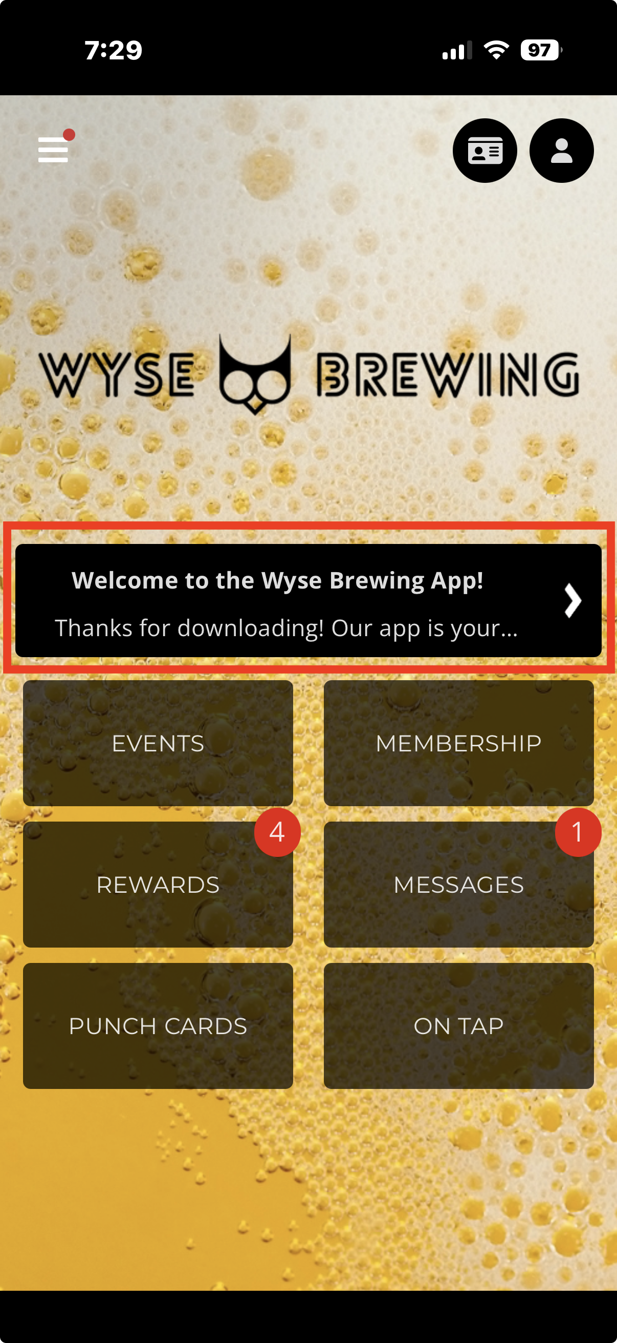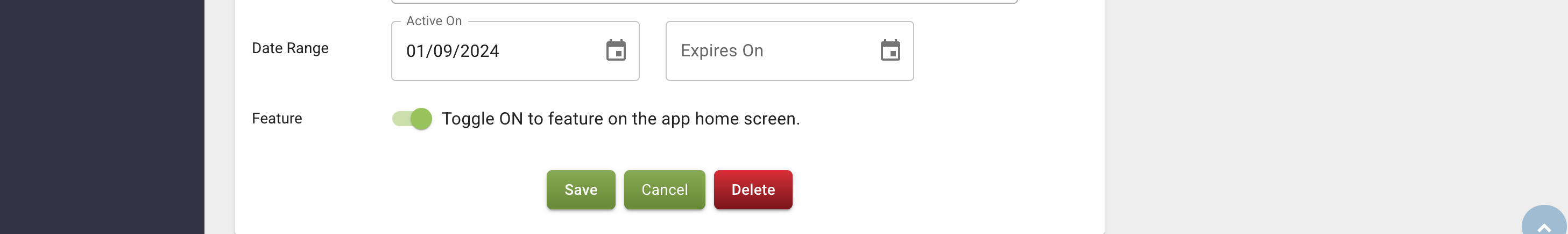 Announcement you have the option to "feature" it as a banner at the top of your Home Screen buttons. If you choose not to "feature" it the Announcement will live under the
