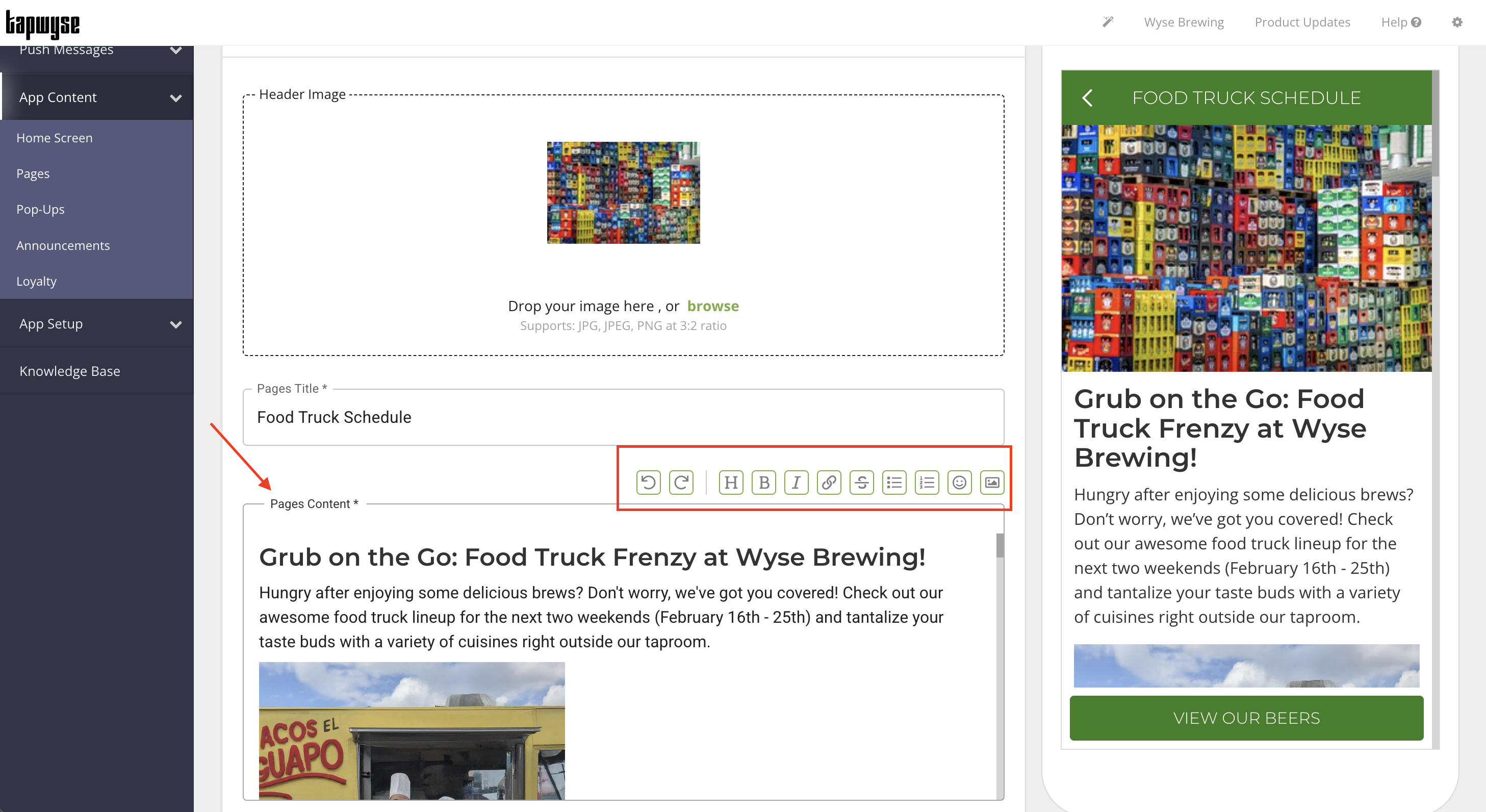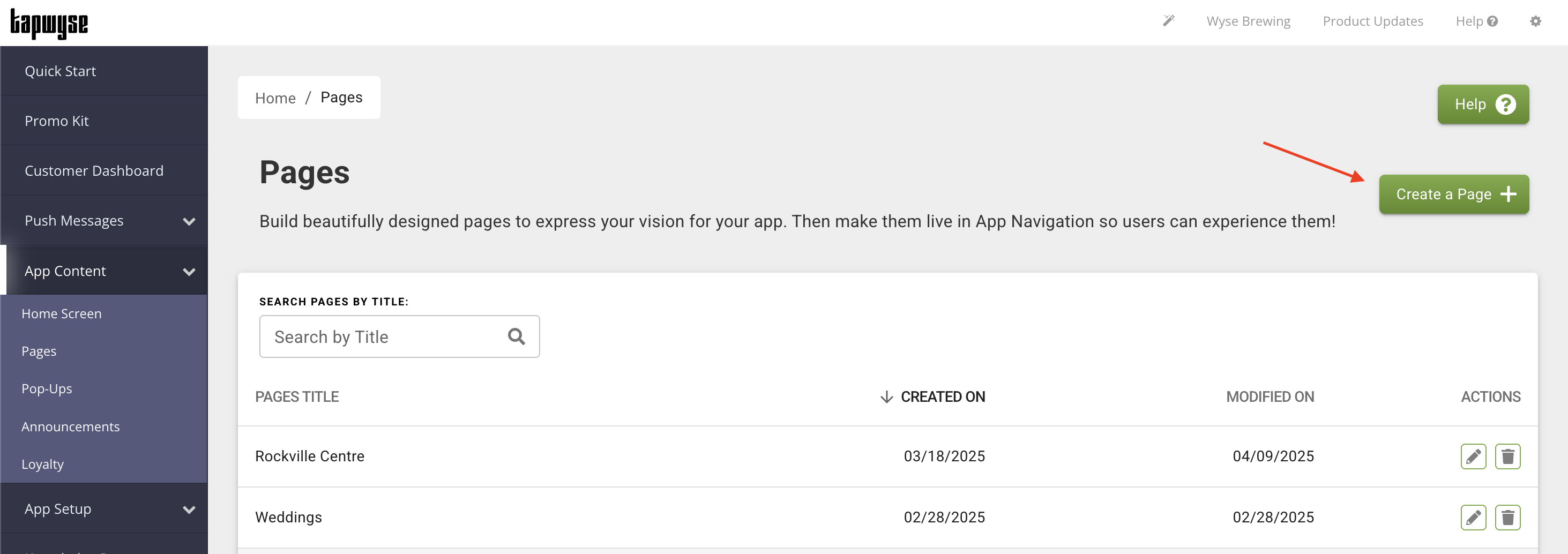 An App Page is a way to create native content in the App Manager with the end goal being to create a button that will open the App Page, showing your app users the content you created.