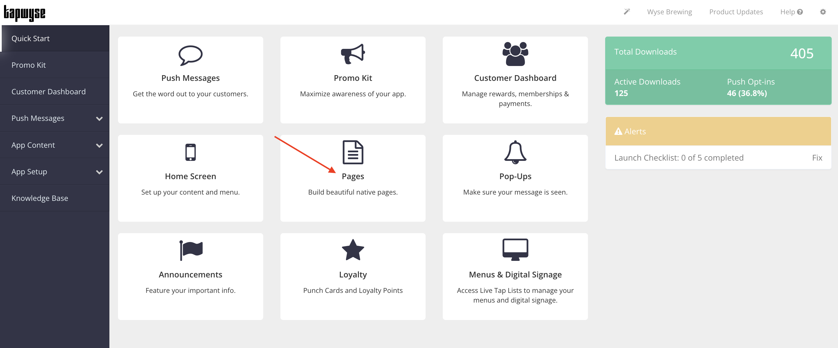Click Pages on the Quick Start screen in the App Manager