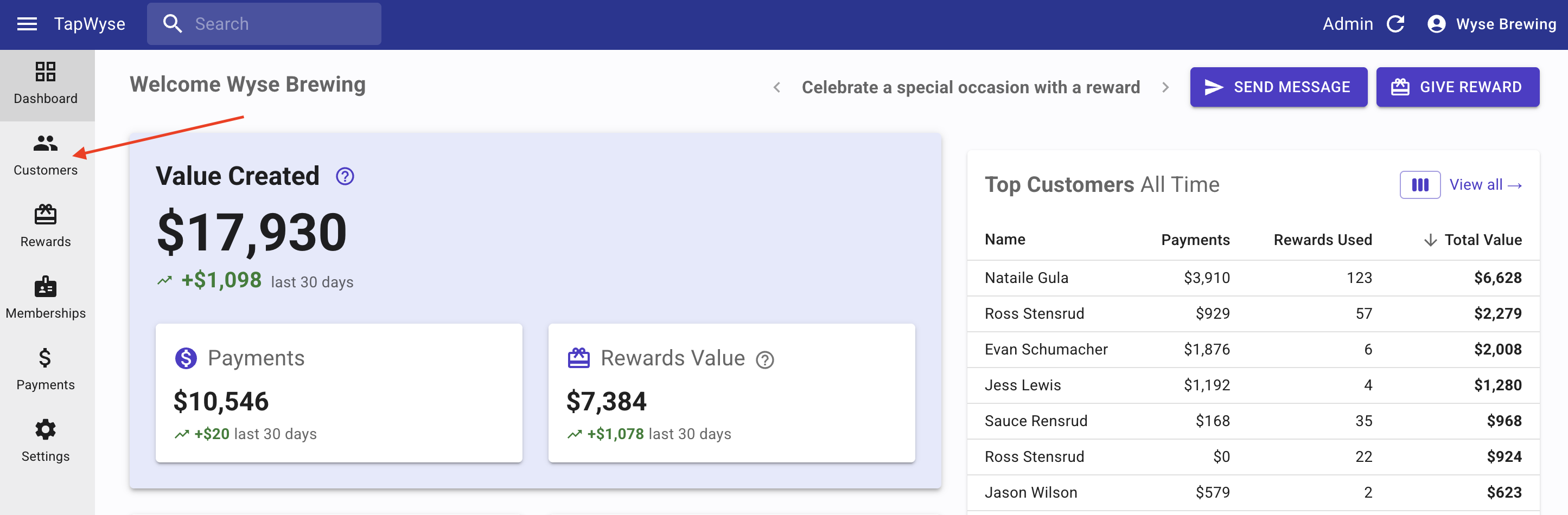 Once you open your Customers page in your Customer Dashboard you can do a number of things including but not limited to:
