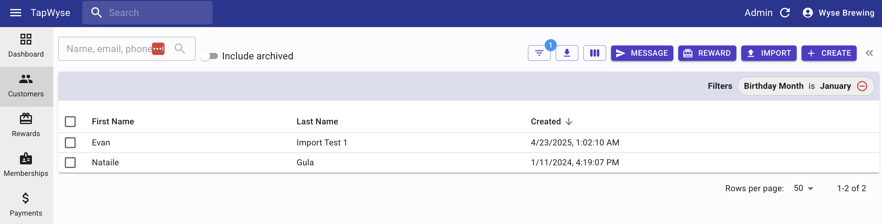 - You will then have a Filtered list on your screen and you can choose to Send a Push Message to these Customers or Give A Reward to these Customers if you'd like.