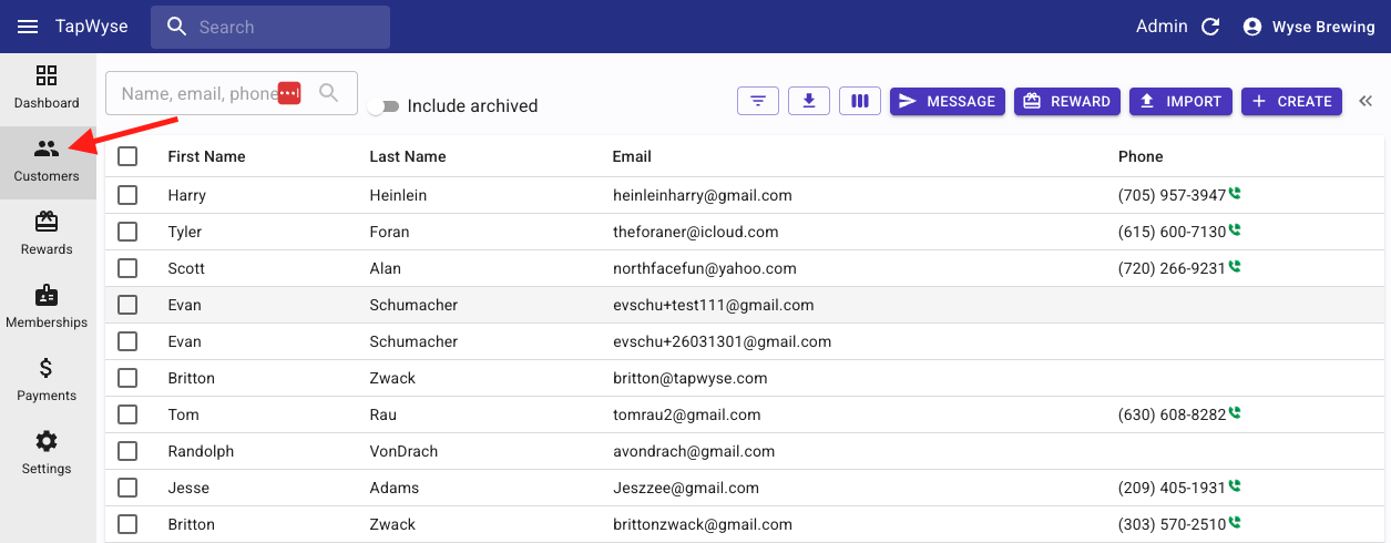 - Click the Customers tab on the left hand navigation bar