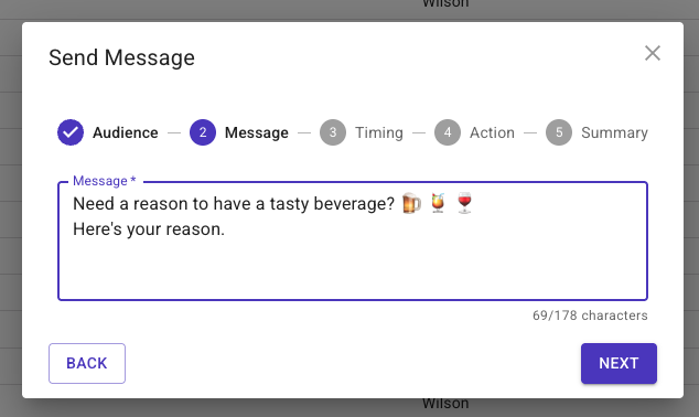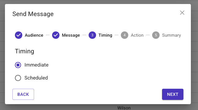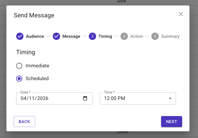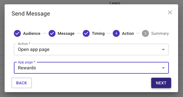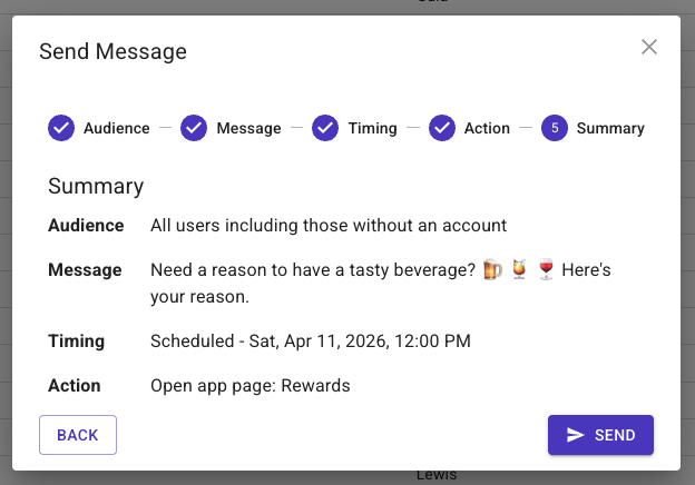*If you made any mistakes simply click on the header where you need to make the change (i.e. Message, Timing, Action), make the update, then click back through to the Summary screen. - Click 'Send'