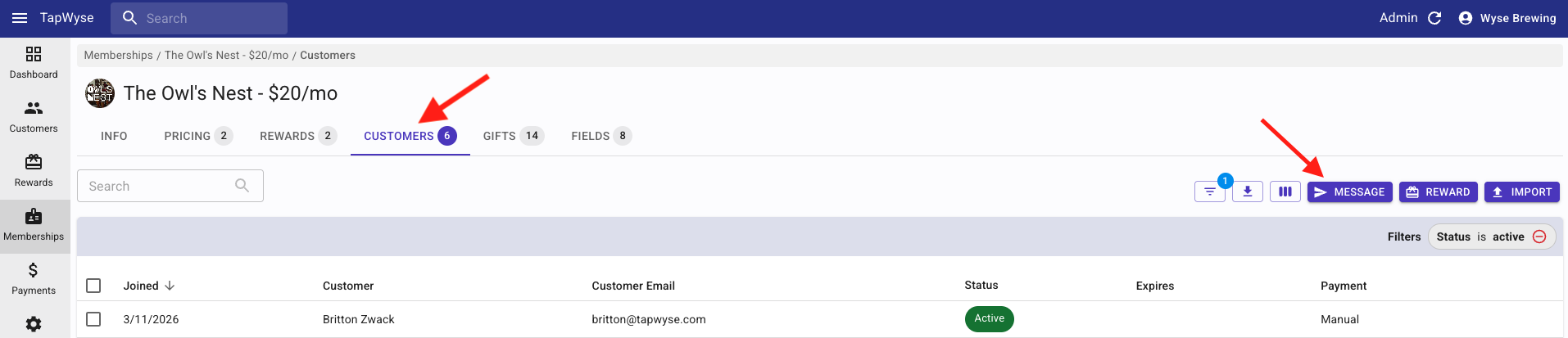 - Customers with an active membership: Every app user that currently has an active membership AND have Allowed Notifications will receive the push message
