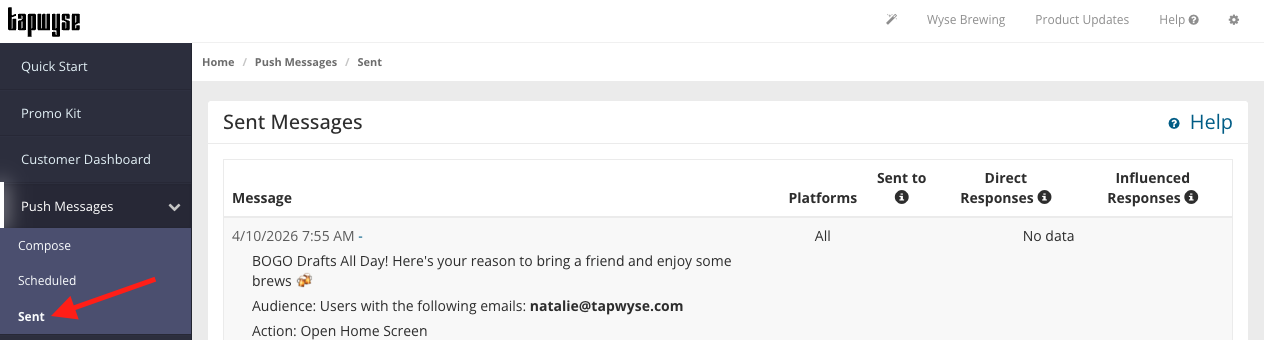 Sent: Push Messages that you have already sent to your app users.